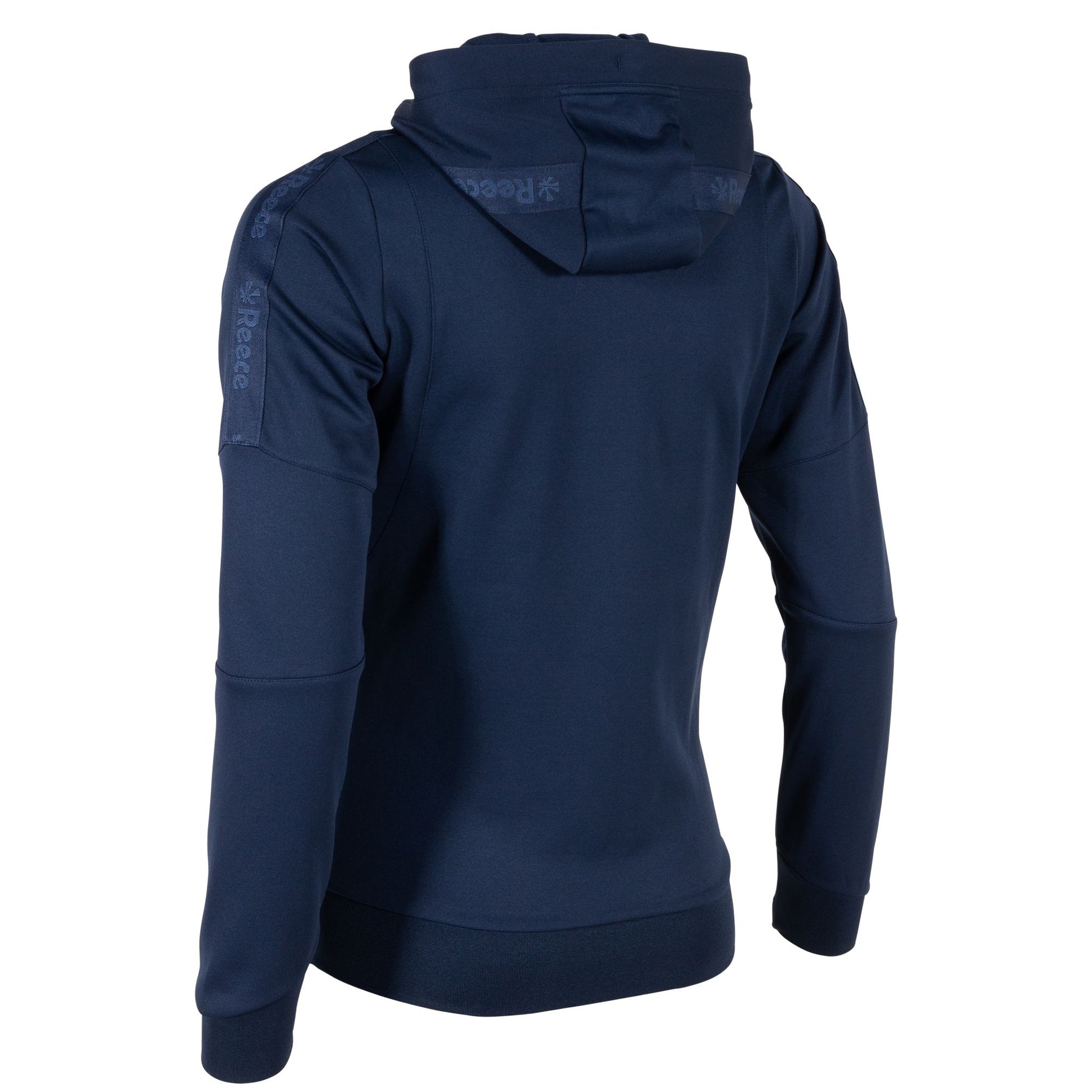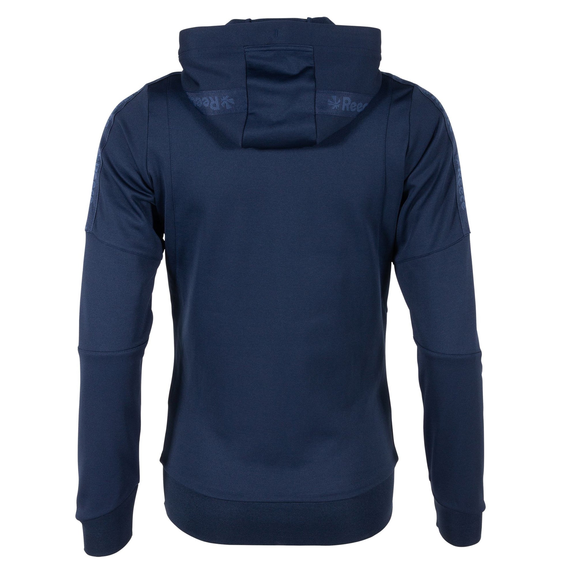 This sporty hooded jacket has an optimal fit and is ideal for training, around sports and as a casual hooded top. The soft, brushed inside provides extra comfort and warmth. The hem, cuffs are made of elastic rib material. On the front, the jacket contains two zipped pockets. The shoulders and upper arm feature tone in tone Reece tape and on the chest there is a printed Reece logo.